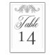 Élégante et vintage carte de numéro de table mariage de style baroque, un chef-d'oeuvre de l'élégance intemporelle, apportez votre journée spéciale. Doté d'une bordure noire française délicate et d'un ornement délicat en fibre d'art sur un arrière - plan blanc immaculé, ce design dégage un charme et une sophistication classiques. Sa simplicité met en valeur ses détails raffinés, créant un design aussi gracieux que votre histoire d'amour. Parfait pour ceux qui chérissent la tradition et l'élégance. Créé par Simply Farmhouse Press.