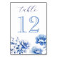 Numéro De Table Elégante Fleurs Bleues Numéro de tableau