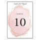 Cette jolie carte de table présente un cadre géométrique et une touche d'aquarelle avec votre numéro de table et le nom de l'événement ou une personnalisation. Le dos présente le même design. Utilisez le formulaire de modèle pour ajouter vos propres informations. Tout ce que vous tapez sur le devant sera automatiquement placé au dos également. L'outil de conception peut être utilisé pour modifier la police et la disposition du texte.