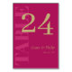 Élégante typographie mariage cartes de numéro de table en rose fuchsia avec TABLE en grandes lettres de couleur or sur le côté des cartes de numéro de table fuchsia rose. Ajoutez les noms et la date du mariage dans une couleur dorée bronzée.