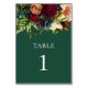 Numéro De Table Emerald Green Moody Floral Bourgogne Mariage