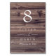 Notre panneau de carte de numéro de table comporte une empreinte de bois et des lettres de script classiques pour une façon élégante d'afficher les numéros de table à votre mariage ou événement à thème rustique.
