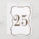 Numéro de table encadré de coquilles Saint-Jacques argent métallisé et marron.