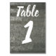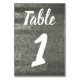 Numéro de table en tôle galvanisée. Numéros de table mathématique pour un événement tenu dans un entrepôt ou un espace industriel converti.