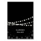 Ajoutez des détails à votre occasion spéciale avec cette carte de table de table de fête d'hiver. Ce design comprend des lampes à cordes élégantes, des flocons de neige et du texte personnalisé sur un arrière - plan noir. Idéal pour une douche de mariage d'hiver moderne en argent et noir, ou une fête de mariage pour couple. Vous pouvez personnaliser le texte et acheter chaque carte individuellement. *C'est une carte à plat. Vous devrez marquer et plier la moitié. Merci.