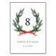 Watercolor evergreen wreath table number with names and date. For more advanced customization of this design, please click the BLUE DESIGN TOOL BUTTON above!