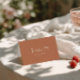Classy and fancy terracotta wedding place card designed for a clean and elegant old money reception table setting. This folded escort card features a handwritten script wedding name paired with contemporary typography. The dusty terracotta and beige old money cream wedding decor adds a fresh, stylish touch to your wedding. Perfect as a custom guest name card for a chic and simple wedding celebration. Use this elegant folded place card to elevate your modern reception table decor. A sophisticated contemporary wedding table card that complements any minimalist wedding theme.