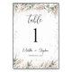 Numéro De Table Feuilles d'aquarelle verte personnalisés