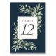 Doté d'un délicat feuille d'aquarelle sur un arrière - plan bleu marine. Ces numéros de table botanique chic peuvent être personnalisés pour votre journée spéciale. Conçu par Thisisnotme©