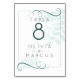 Numéro de table mariage | Feuilles chic et simple, de couleur menthe pâle derrière le texte avec un cadre mince et tourbillonne en vert jade à accent - Ceci fait partie d'une suite mariage coordonnée.