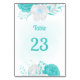 romantique turquoise et fleurs blanches belle carte numéro de table. Les détails de la parties scintillant sont simulés.