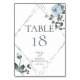 Carte de numéro de table de mariage | Des roses aquarelles bohèmes bleu poussiéreux entourent un cadre argenté en forme de triple diamant avec de la verdure sauge. Le verso est identique. Personnalisez le texte, le style de police, la couleur et la taille. Œuvre originale créée pour BarefootBride™ par © WhimsicalArtwork™ - Ceci fait partie d'une suite de papeterie de mariage complète avec des invitations de mariage, de baby shower et d'autres événements.