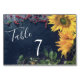 Cette carte de numéro de table de mariage campagnard rustique présente deux jolis tournesols jaunes avec des baies et de la verdure sur un arrière - plan en ardoise noire.