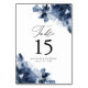 Numéro De Table Floral Indigo Abstrait | Mariage personnalisé