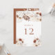 Notre élégant numéro de table de mariage est le moyen idéal d'annoncer votre jour de mariage à vos invités. Chaque carte présente des dessins floraux complexes et une typographie magnifique dans des couleurs neutres, y compris la terre cuite, le beige et des tons terreux. Imprimés sur du papier cartonné de haute qualité, ils impressionneront certainement vos invités et donneront le ton pour votre journée spéciale.