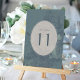 Une carte de numéro de table chic florale élégante dans une teinte sarcelle poussiéreuse, présentant une illustration florale de nature morte vectorielle dans une teinte métallique vintage de bleu-vert, donnant une ambiance de mariage industriel/entrepôt rustique. Remarque : veuillez ajouter chaque numéro de table au panier séparément avant de passer à la caisse.