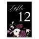 Habillez vos tables de mariage ou de fête avec votre carte de numéro de tableau floral violet et blanc. Présente des peintures à la main violet, lavande et blanc floral (ou fleurs) sur un arrière - plan noir. Visitez cette page pour commencer à créer la vôtre aujourd'hui.