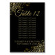 Ces belles cartes numériques de table présentent un design simple mais élégant avec du texte en or sur un arrière - plan noir avec une frilly or faux feuille de lin floral dans les coins. Chaque carte peut contenir les noms de 10 invités, ils fonctionnent donc comme un tableau de sièges, ce qui permet aux gens de trouver facilement leurs tables à la réception de votre mariage.