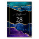 Galaxy faux parties scintillant agate pierre bat mitzvah carte numéro de table avec élégante typographie manuscrite personnalisable à vos détails de l'événement.