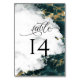 Numéro de table de mariage | Géode aquarelle moderne de saphir sarcelle fumé par la BarefootBride™ - Illustration aquarelle peinte à la main de mariage moderne dans des nuances de sarcelle foncée et de blanc avec des reflets de veinage dorés scintillants a l'apparence d'un géode de saphir sarcelle - Une combinaison de calligraphie script combinée avec une mise en page de texte minimaliste et contemporaine en fait une suite de mariage au style tendance. Cela fait partie d'une collection de papeterie de mariage avec des accessoires de mariage assortis.