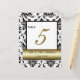 Cartes élégantes, sophistiquées et élégantes pour votre réception de mariage. Floral, noir et blanc vintage damask motif arrière - plan avec un numéro de table or et un effet de ligne d'or métallique couleur accent où vous pouvez ajouter votre nom marié de la date mariée et marié et mariage. Design de disposition par Elke Clarke©. Carte graphique sous licence. Customisez avec vos informations et faites une carte avec chaque numéro et ajoutez une carte par numéro dans votre panier. Ensuite, utilisez votre commande précédente pour sélectionner "customiser" et changer le numéro.