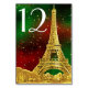 Golden Paris France Skyline #2, Festive Christmas Red and Green Starry Sky Table Numéro Card ============ Invitations et accessoires personnalisables sur le thème parisien avec une tour Eiffel stylisée couleur or contre un ciel rempli d'étoiles rouge et vert de Noël. Ce produit fait partie d'une suite de conceptions de jumelage et de coordination qui sont facilement personnalisables pour de nombreuses occasions et événements. Veuillez noter qu'il s'agit d'une conception graphique et qu'elle ne contient aucun tissu, métal, gravure ou gaufrage. 2015 ©NYCisMyMuse Tous droits réservés