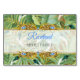 Plumes royales de paon doré sur un arrière - plan de feuilles vertes tropicales parsemé de plumes exotiques collection mariage motif pour mariage ou décor design