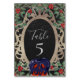 Ces cartes de numéro de table de fête personnalisées ont un conte de fées gothique inspiré, le thème Blanche Neige. L'arrière - plan est décoré dans un style noir rustique. Un miroir magique vintage de conte de fées d'or est placé dans le centre avec toutes les informations de la fête. Le miroir est entouré de roses et de vignes rouges, créant un look enchanteur. Une image d'une pomme empoisonnée est placée au bas du miroir.
