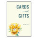 This wedding tabletop sign features a minimalist design with a light beige background, creating an airy and clean aesthetic. The text "CARDS and GIFTS" is prominently displayed in bold serif and script fonts, accompanied by a vibrant watercolor bouquet of yellow proteas at the bottom. The deep teal color palette adds elegance, while the phrase "Thank You" subtly concludes the design, conveying gratitude and warmth. Perfect for expressing appreciation at your special event, this sign blends modern minimalism with organic elements to create a harmonious and inviting atmosphere.