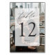 Les élégantes cartes de numéro de table de mariage moderne disposent d'une photo verticale à fond saigné avec votre numéro de table superposé sur un élément rectangulaire blanc pur avec des accents de script de calligraphie chic. Personnalisez avec vos initiales et la date mariage en bas.