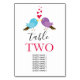 Ce design présente une paire d'inséparables adorables. Une illustration simple et mignonne d'oiseaux amoureux des coeurs rouges flottant dans l'air. L'amour et la passion sont dans l'air avec ce design. Un design simple et romantique avec une typographie élégante. Ce design est idéal pour n'importe quel thème mariage. Le design parfait de la table de mariage toute saison. Des invitations de mariage et d'autres articles de papeterie sont également disponibles. Customisez le numéro et achetez chaque numéro de table individuellement en fonction du nombre de numéros de table dont vous avez besoin.