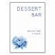 This elegant wedding tabletop sign features a minimalist design with ample white space, creating an airy and clean look. The navy blue text "DESSERT BAR" is prominently displayed in a bold serif font at the top, while "please take a treat!" appears below in a lighter weight serif font, inviting guests to indulge. A beautifully illustrated blue peony flower adds a touch of whimsy and sophistication to the lower left corner, enhancing the overall refined aesthetic. Perfect for guiding guests to your dessert selection, this sign combines simplicity with charm, making it ideal for any wedding celebration.