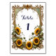 Joli tournesol jaune élégant cadre d'art mariage numéro de table