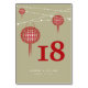 Lanterne Chinoise Double Félicité en Rouge avec des Guirlandes de Lumières sur un Fond Gris Vert Uni, Carte de Numéro de Table de Mariage Chinoise Recto-Verso.