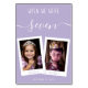 Une façon moderne et plus originale de personnaliser vos numéros de table avec des photos d'enfance de mariée et mariée à l'âge de ce nombre (la valeur par défaut est sept). Les photos d'espace réservé d'une petite fille (la mariée) et d'un petit garçon (le marié) ont des bordures blanches rétro, se chevauchant, dans la moitié inférieure. Les noms de la mariée et du marié sont écrits sur les bords blancs inférieurs des photos. Dans la partie supérieure, il y a le message "quand nous étions [âge]" avec l'âge écrit dans un script moderne. Dans la partie inférieure, sous les deux photos, il y a la date. L'arrière - plan est lavande (violet clair), la plupart du texte est blanc (sauf les noms sur les photos, qui sont aussi lavande). Les photos des deux enfants prises dans un espace réservé sont de Pixabay et sont gratuites pour un usage commercial.