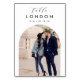 Ajoutez une touche finale spéciale à vos tables de réception de mariage avec ces cartes de numéro de table photo personnalisées. Nommez chaque table d'après une destination de voyage mémorable et ajoutez une photo et le nom de la destination à ces porte-cartes uniques. Votre photo est alignée en bas dans une disposition arquée, avec le nom du lieu et vos initiales et date de mariage centrés en haut.