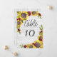 Fleurs de soleil sur bois blanc : Mariage Numéro de table Modèle. Ce Floral d'automne est simple mais élégant et conviendra parfaitement à un mariage élégant. Le design neutre présente une carte minimaliste décorée avec un spray romantique de tournesols avec un arrière - plan en bois blanc.
