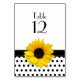 Pointe de polka noir et blanc chic et classe, carte de table de mariage de tournesol jaune. Pois noirs et blancs rétro jumelés à un tournesol jaune vif. Utilisez cette carte de table pour un mariage ou toute autre occasion spéciale. Pour cela, vous devez modifier le numéro de table sur la carte, en ajouter un dans votre panier, puis répéter le processus jusqu'à ce que vous ayez toutes les cartes de numéro de table dont vous avez besoin. REMARQUE : Il s'agit d'un design imprimé plat sans embellissement en relief ou en 3D.