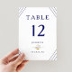 Carte de numéro de table de mariage à rayures nautiques Ancre Or