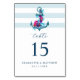 Ajoutez une touche côtière à votre décor mariage grâce à ce design de numéro de carte nautique. Doté d'une ancre fleurie sur un arrière - plan à rayures bleues et blanches, il est entièrement personnalisable. Idéal pour les mariages de plage et de sports nautiques.