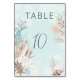 Plongez dans l'enchantement de l'amour avec notre suite mariage sur le thème subaquatique captivante. Contre un arrière - plan turquoise d'eau pâle qui évoque la sérénité de la mer, une texture sous-marine ajoute profondeur et dimension au design. La carte de numéro de table mariage est ornée d'un subtil tableau de coquilles bleues, tannées, brunes, pêche et blanches, de coraux et de la vie marine, créant un tableau harmonieux et fascinant. Il capture l'essence d'une romance océanique, où l'amour et la nature se mêlent dans une danse parfaite. Les coquillages, les coraux et la vie marine symbolisent la beauté et la diversité de votre histoire d'amour, tandis que l'arrière - plan serein d'aqua turquoise reflète le calme et la pureté de votre union. Préparez-vous à enchanter vos invités avec un design qui les transporte dans un monde sous les vagues, où l'amour est aussi illimité que l'océan lui-même. Préparez-vous à une fête mariage qui célèbre la merveille de la nature et la magie de l'amour. Créé par Simply Farmhouse Press, il fait partie de la collection Modern Aqua Ocean & Shells mariage suite.