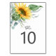 Numéro De Table Mariage aquarelle au tournesol rustique et eucalyp