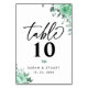 Créez une atmosphère d'élégance raffinée avec ces somptueux numéros de tableaux de fleurs vertes. La combinaison d'un feuillage délicat, de belles fleurs et d'une typographie de script élégante ajoute une touche de sophistication à votre réception de mariage. Guidez vos invités avec style en trouvant leurs tables assignées et profiter de la célébration de l'amour.