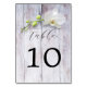 Mariage Arrière - plan blanc orchidée en bois Numéro de table