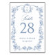 Numéro De Table Mariage Bleu Poussiéreux à Fleurs de Grâce Ornée V