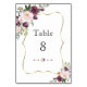 Numéro De Table Mariage Cadre Doré Fleurs Ivory Rouge Bourgogne