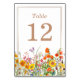 Numéro De Table Mariage campagnard aux fleurs sauvages colorées