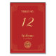 Un élégant mariage chinois rouge numéro de table 3.5x5inch signe avec un cadre en or classique avec un double caractère xi.