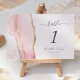 Le bord gauche de cette élégante carte de numéro de table mariage moderne est doté d'une bordure en aquarelle rose vif et recouverte d'une parties scintillant en faux or. Le texte personnalisable combine écriture manuscrite gris fusain, italique et polices cuivre sur un arrière - plan blush.