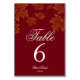 Numéro De Table Mariage d'automne feuilles de Bourgogne et d'or